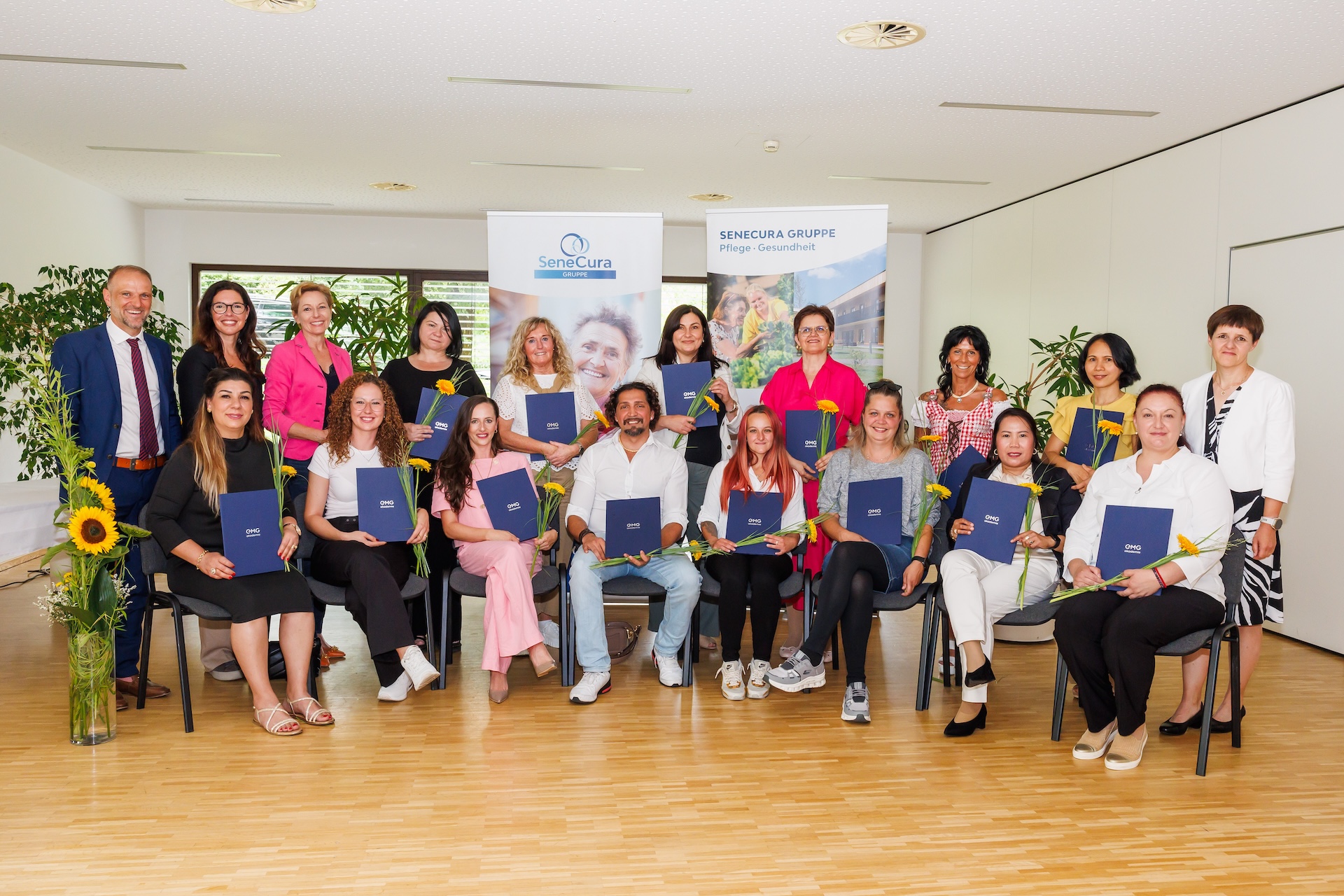Große Freude, berechtigter Stolz und viele persönliche Gratulationen – kürzlich fand im SeneCura Sozialzentrum Laurentius-Park Bludenz die feierliche Zertifikatsverleihung des Heimhelfer:innen-Lehrgangs in Kooperation mit der EMG Akademie, der Schule für Gesundheits- und Krankenpflege, statt. 14 Absolvent:innen nahmen in einem festlichen Rahmen ihre Zertifikate entgegen – gemeinsam mit Familien, Kolleg:innen, Wegbegleiter:innen und Vertreter:innen aus Politik, Pflege und Bildung.